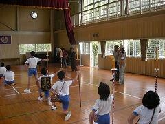 運動会に向け、やんぼし踊り(小崎地区伝統芸能)の練習を再開しました。今日も、やんぼし踊り保存会の方々に指導していただきました。お忙しい中、来校していただき、心から感謝いたします。あと2回練習を予定しています。子どもたち、地域の方々、先生たちが一緒に力を合わせ、成功させたいと思います。