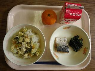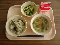 雑穀ご飯・ふぶき汁・鰯のおかか煮・添え白菜