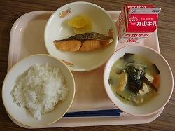 麦ご飯・味噌汁・鮭の塩焼き・つけもの 518kcal