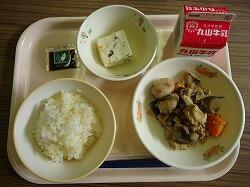 麦ご飯・鶏肉と大豆の煮物・千切り大根と小松菜のサラダ