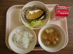 麦ご飯・けんちん汁・魚のみそバター焼き・添えキャベツ