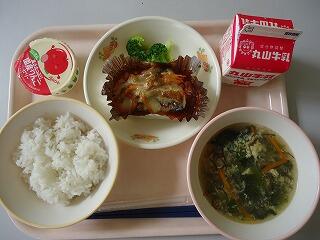 麦ご飯・もずくスープ・魚のピザソース焼き・ブロッコリー