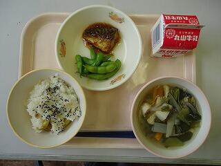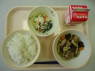 ひじきご飯の大豆、ご汁の大豆、和え物のピーナッツ と今日