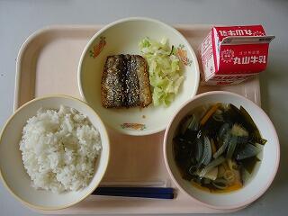 初めて給食が提供された当時の「おにぎり。焼き魚・つけもの」