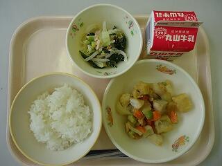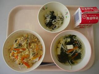 麦ご飯・高野豆腐の卵とじ・梅マヨ和え 640kcal