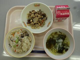きのこご飯・ワカメ汁・五目豆 629kcal