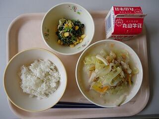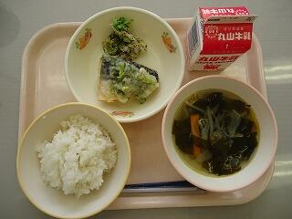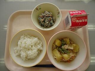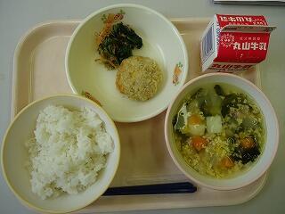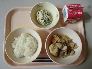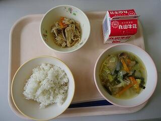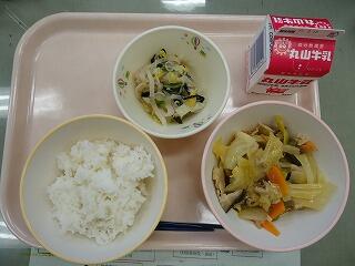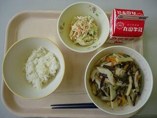 疲れた体に、豚肉としょうがで労ってくれそうな給食でした、。