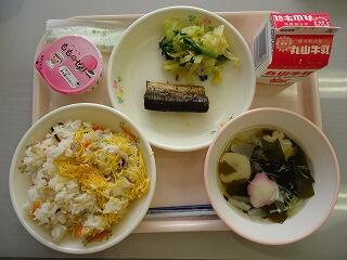 ちらしずし・すまし汁・さんまの塩焼き・菜の花の和え物