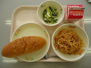 パン・ミートビーンズスパゲティ・りっちゃんのサラダ 665kcal