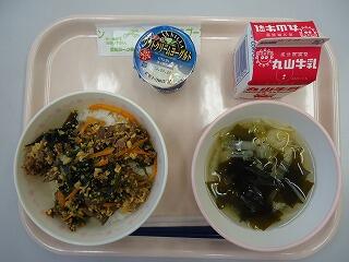 地産地消献立です。宮崎牛を使ったどんぶりです。