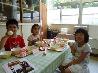 一緒に給食を食べました。食べ終わるのも早かったです。