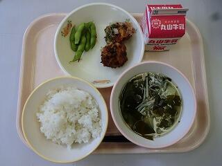 麦ご飯・わかめ汁・揚げたこ焼き・枝豆 676kcal