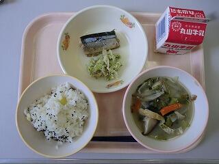 雑穀ご飯・ふぶき汁・いわしのトマト煮・ピーナッツあえ 610kcal