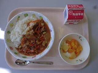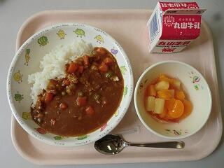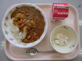 久しぶりの給食のカレーは美味しかったです。デザートの