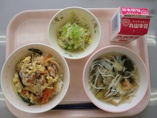 親子丼・魚そうめん汁・ゴマ酢和え 639kcal