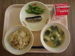鶏ごぼうご飯・じゃがいものみそ汁・鰯の生姜煮・枝豆
