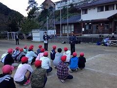 右の写真は、6年生の学級活動の様子です。警察官の方から薬物乱用の危険性について学んでいるところです。