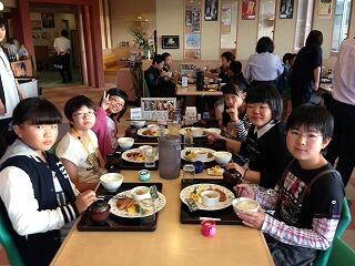 今朝の小崎小学校6年生3名は、元気いっぱいで良かったです。朝食も美味しそうですね!!