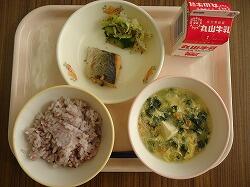 麦ご飯・ほうれん草のみそ汁・魚のみぞれ煮