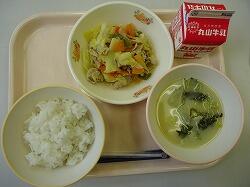 パン・菜の花のスープスパゲティ・海草サラダ 613kcal