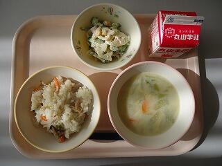 きのこご飯・ご汁・れんこんのマヨネーズ和え 646kcal