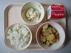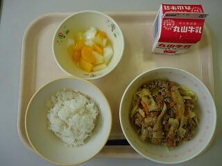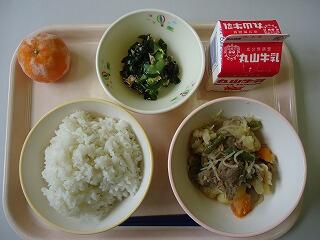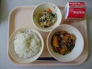 疲れた体に、豚肉としょうがで労ってくれそうな給食でした、。