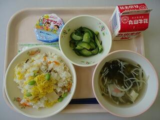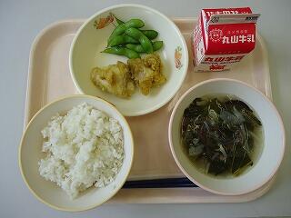 麦ご飯・春雨スープ・鶏肉のカレー揚げ・枝豆 681kcal