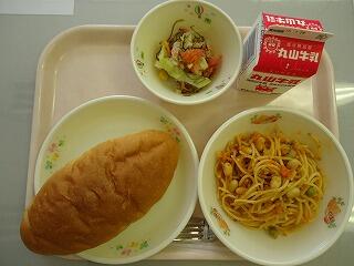 パン・ミートビーンズスパゲティ・りっちゃんのサラダ 665kcal