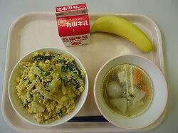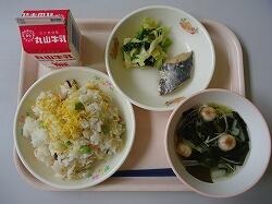 麦ご飯・かき玉汁・魚の梅マヨネーズ焼き・添えもやし