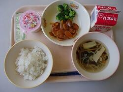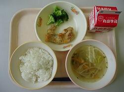 麦ご飯・ワンタンスープ・鶏肉のレモン和え・ブロッコリー
