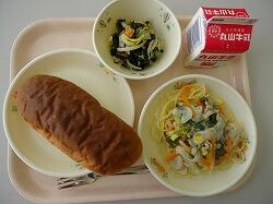 パン・菜の花のスープスパゲティ・海草サラダ 613kcal