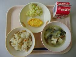 たけのこご飯・なめこ汁・トマトミートオムレツ