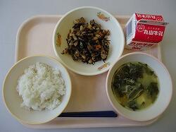 麦ご飯・かぼちゃのみそ汁・大豆とひじきの炒め煮