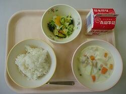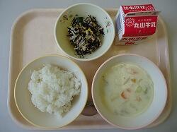 麦ご飯・クリームシチュー・千切り大根とひじきのサラダ