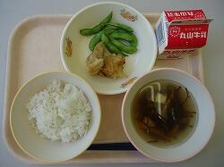 えんどうごはん・わかたけ汁・カツオ南蛮・キャベツ