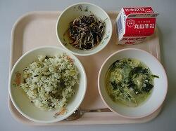 わかめご飯・炒り豆腐・小松菜のごまあえ