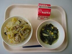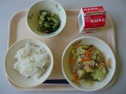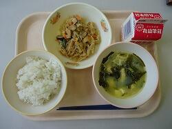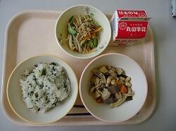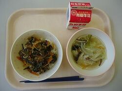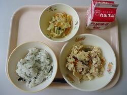 わかめご飯・炒り豆腐・小松菜のごまあえ