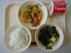 麦ご飯・じゃがいものみそ汁・あじと野菜の甘酢がらめ