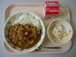 麦ご飯・鶏肉のバーベキューソース・野菜スープ