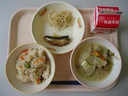 きのこご飯・豚汁・鰯の梅煮・もやし