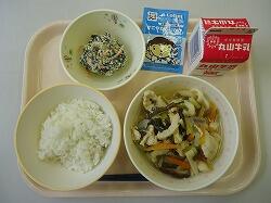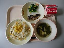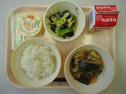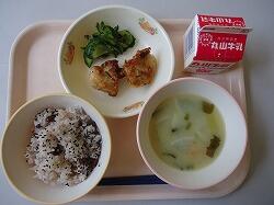 麦ご飯・しいらの甘辛揚げ・キャベツ・五目スープ