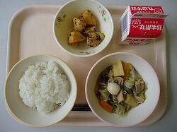 麦ご飯・けんちん汁・鶏肉と野菜の味噌炒め
