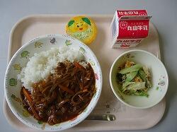 今日のメニューは村内の6年生のリクエストです。パンが柔らかいので