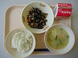 麦ご飯・白菜のみそ汁・ひじきと大豆の炒め煮