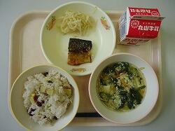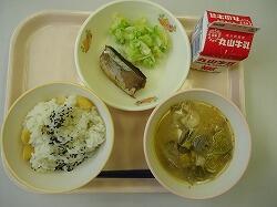 萩ごはん・かき玉汁・さばのみぞれ煮・もやし
