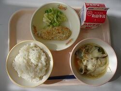 麦ご飯・里芋のみそ汁・さんまの甘露煮。きゅうり