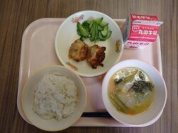 麦ご飯・とうきび汁・鶏の唐揚げ・きゅうり
