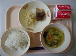 麦ご飯・野菜スープ・さばごま味噌煮・もやし