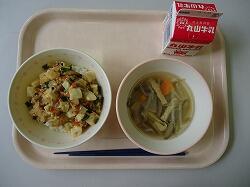 大豆料理は給食の献立の王道で、五目豆の大豆も