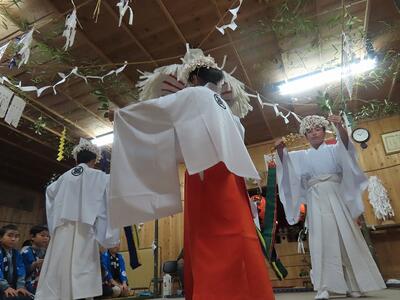 5年生1名、6年生3名で「大神(だいじん)」を舞いました。